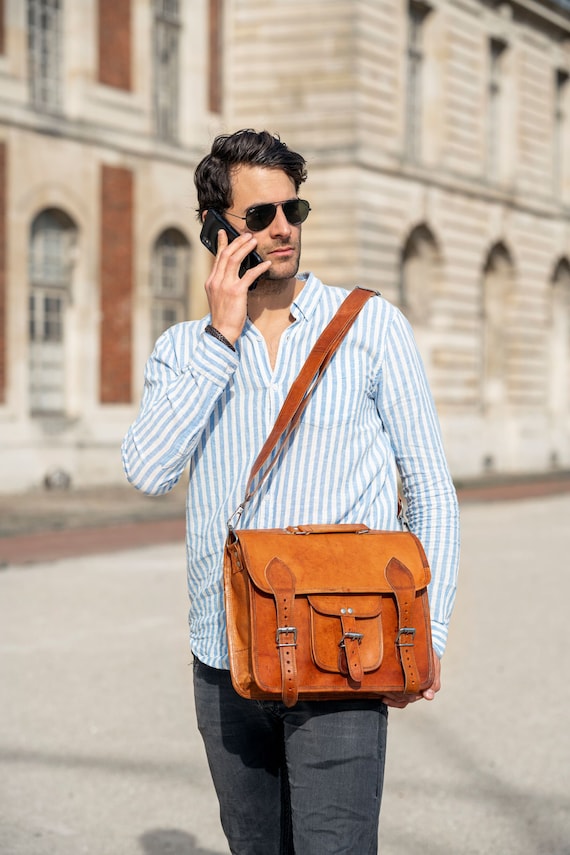 Bolso bandolera de piel auténtica para hombre, cartera de piel con gran capacidad de almacenamiento, portadocumentos de piel, ELIO Etsy España