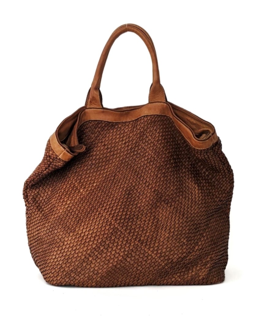 Bolso shopper trenzado de piel lavada camel Beatrice IBAGS BELTS