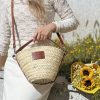 Cesta Bolso Bandolero De Playa, Capazo De Palma Con Asas De Piel Bolsa De Fibras Naturales Con Asas Largas