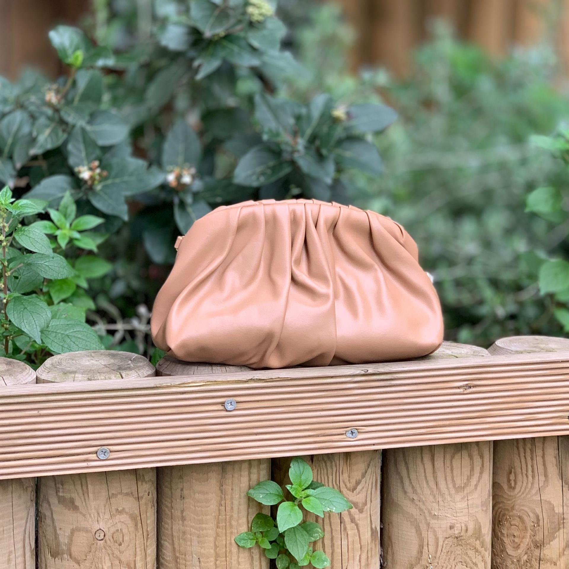 Bolso Clutch piel fruncido superior toffee: 34,95 €
