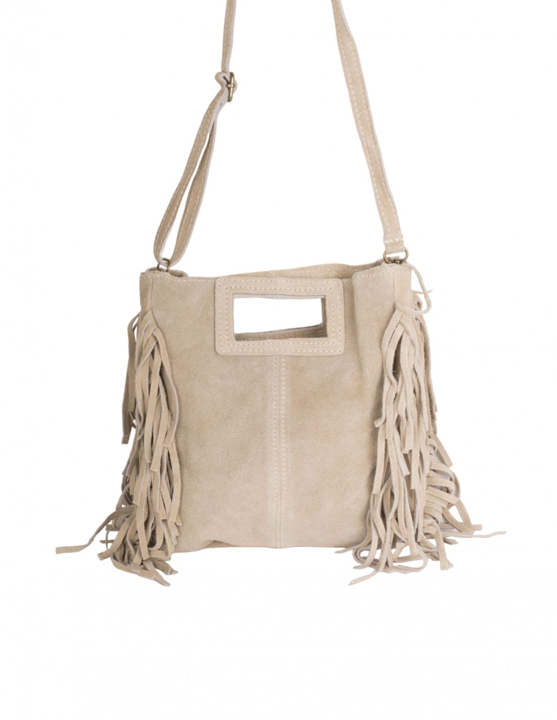 Bolso Flecos Piel Serraje Beige PERA LIMONERA