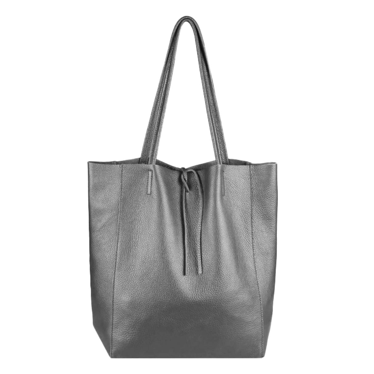 BOLSO SHOPPER PIEL GRIS PLOMO