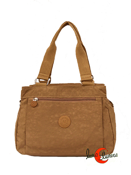 Bolso 2388 de naylon, bolso de hombro de doble asa impermeable, color beige arena.