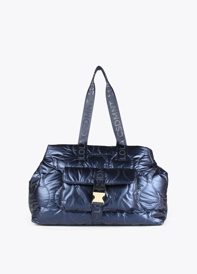 Bolso de viaje acolchado metalizado azul de Lola Casademunt