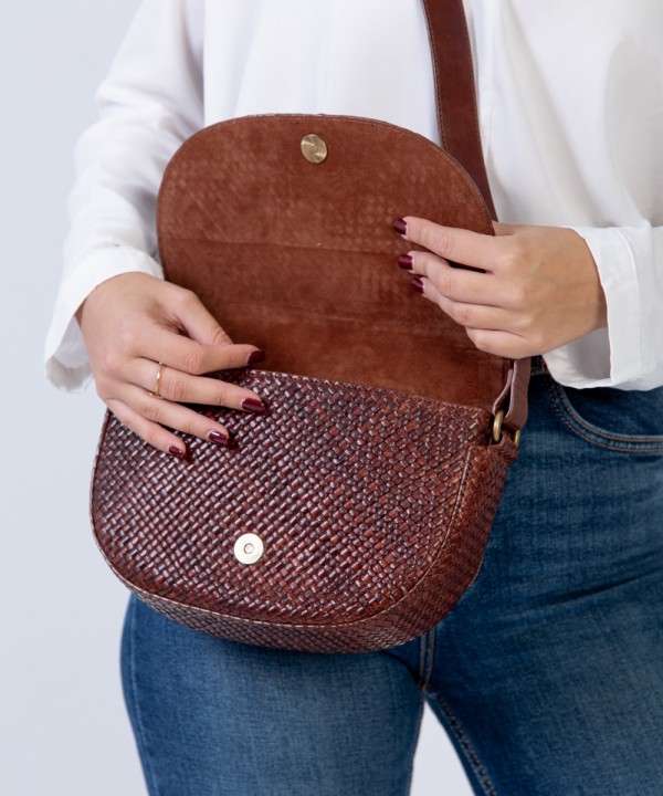 BOLSO DE MUJER MARRÓN FABRICADO EN ESPAÑA SA HALF MOON WOVEN BAG AMPARO INFANTES