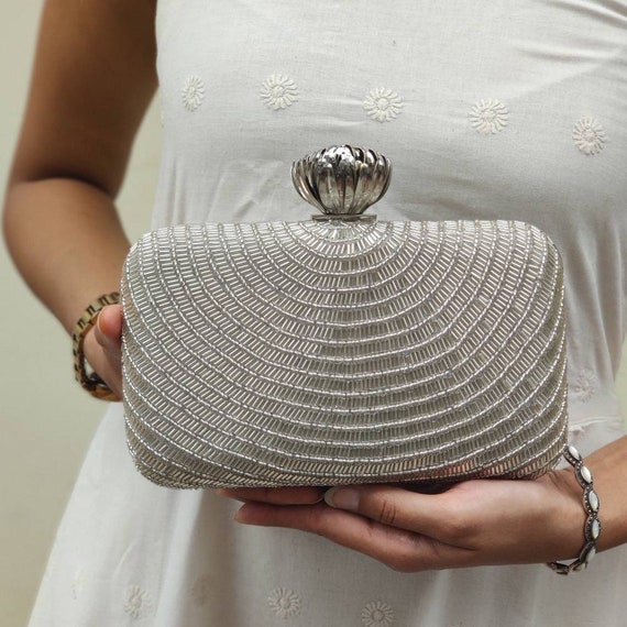 Bolso de noche plateado, bolso de fiesta Indian Zardozi Clutch Sling, bolso de novia de boda, clutch de noche embellecido, regalo Etsy España