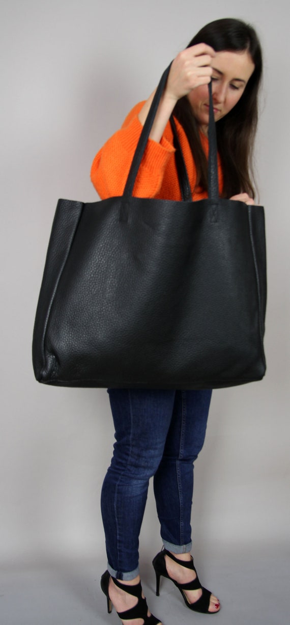 TOTE DE GRAN TAMAÑO, Bolso grande holgado, Bolso negro para mujer, Bolso de cuero, Bolso de diario, Bolso de cuero para mujer, Bolso de mano de cuero Etsy España