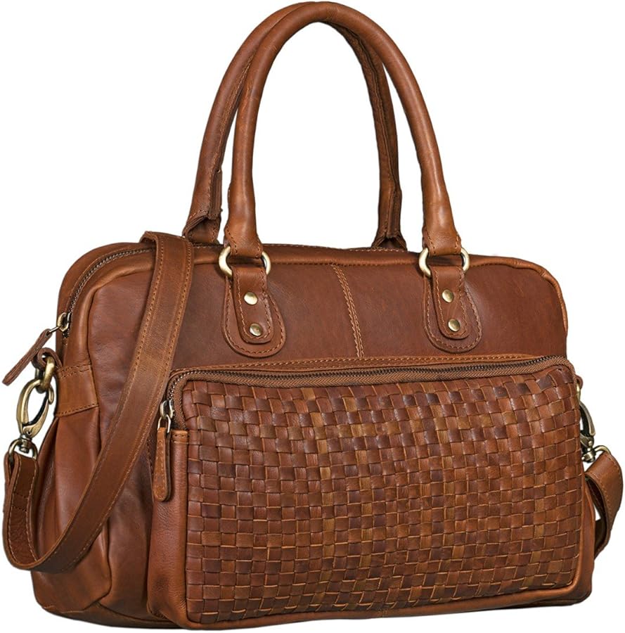 STILORD Vintage Bolso de Mano Bolso Bandolera Cuero Trenzado Piel Elegante Bolsos Bandolera Mujeres Cognac marrón