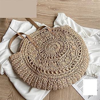 AYWTIUN Bolsos Tejidos Crochet Bolso Redondo de Paja de Verano for Mujer, Bolso de Playa de Viaje Tejido Hueco, Bolso de Hombro de Gran Capacidad, …