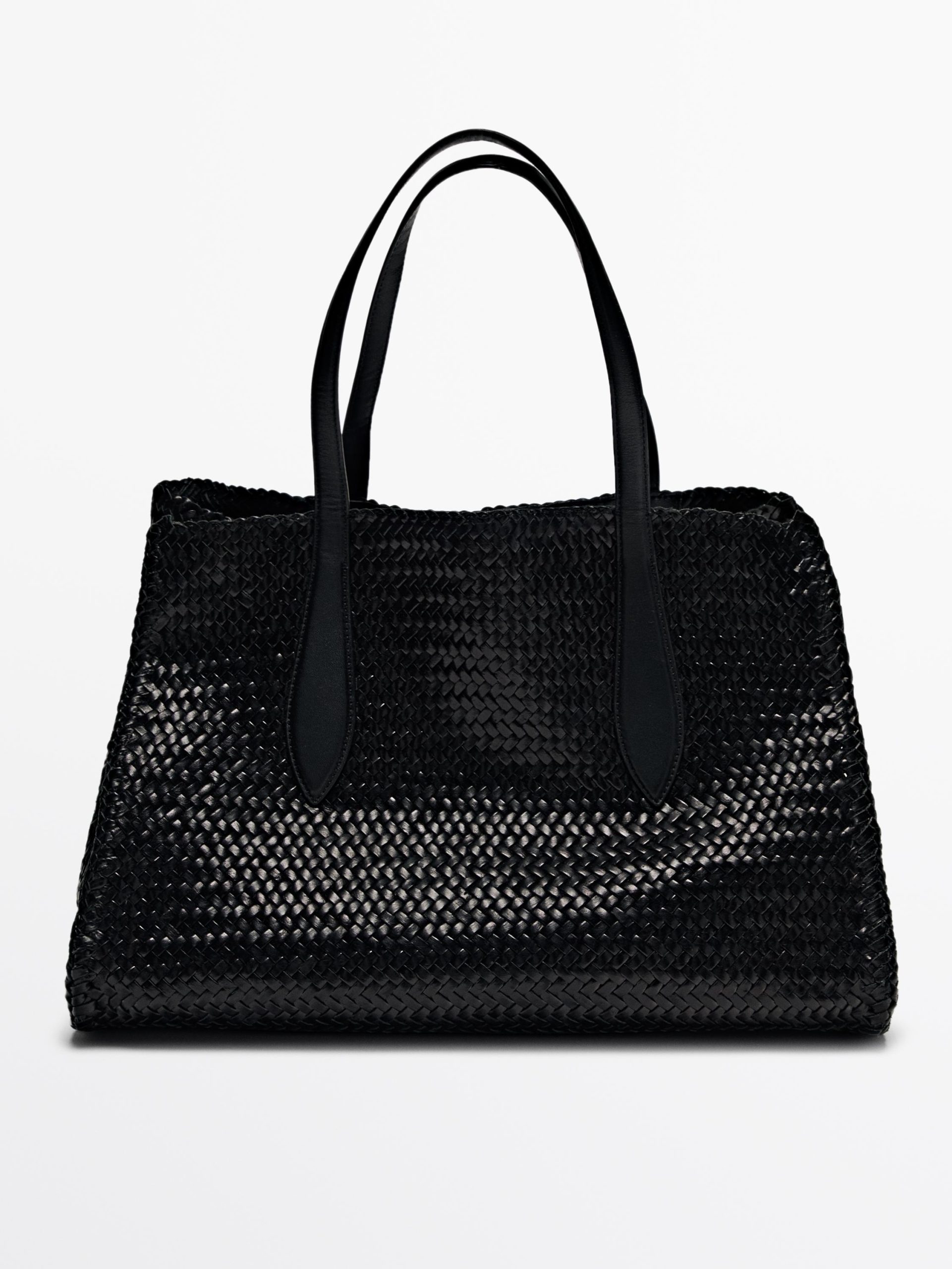 Bolso maxi satchel trenzado piel napa · Negro · Prenda Exterior Piel | Massimo Dutti