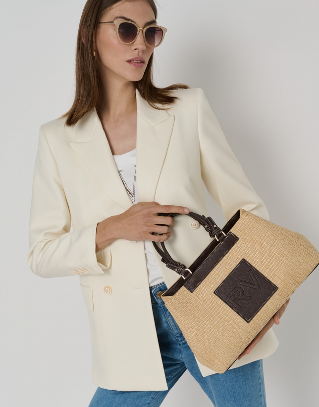 Bolso Satchel Telma beige y piel cuero Mujer | Roberto Verino