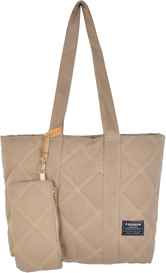 SAVOSWEET Bolsos Tote Bag Mujer, Bolsos de Hombro Mujer Grandes, Bolso de Mano Acolchado, Bolso Shopper Caqui para Oficina, Trabajo, Compras, …