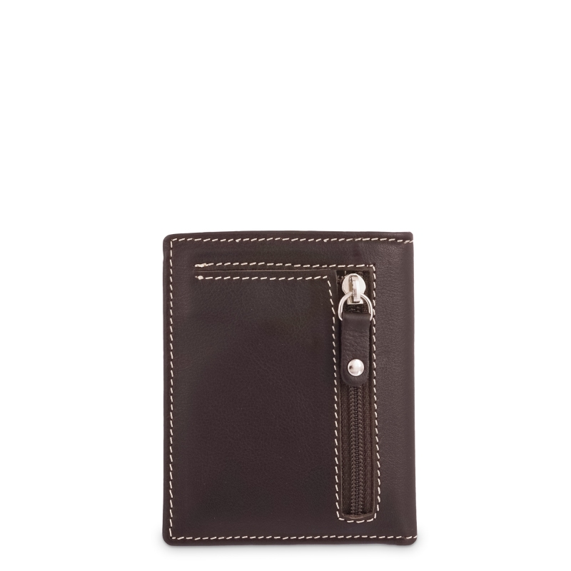 Cartera tarjetero con monedero exterior hombre en piel vacuno color marrón Mate