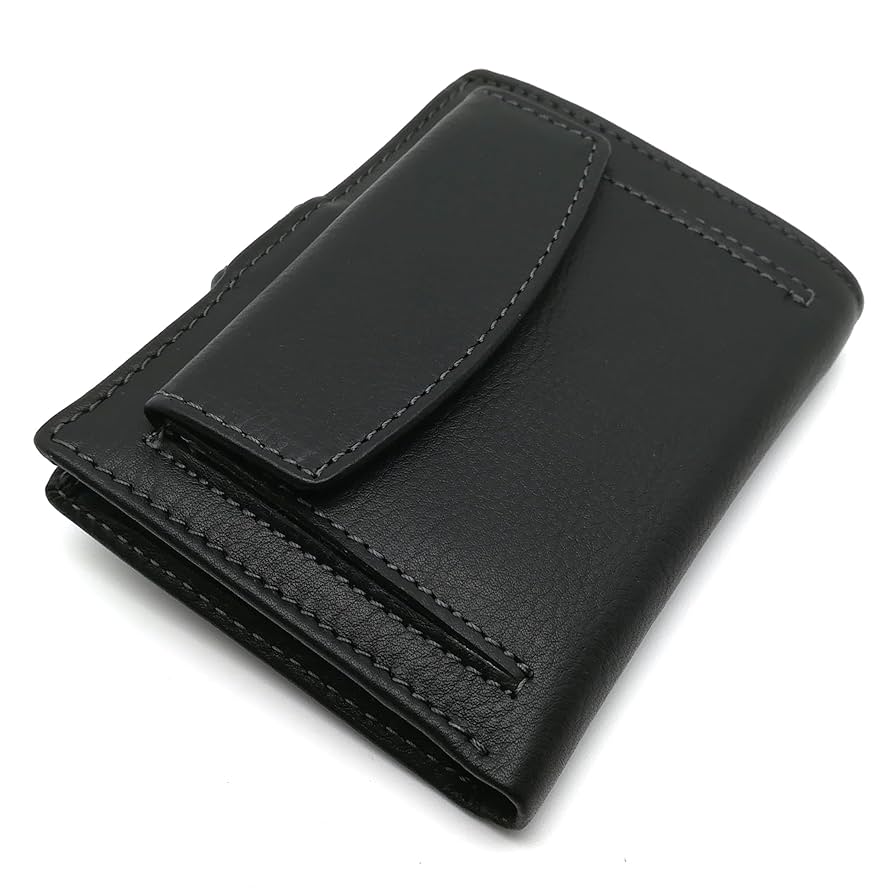Mini Cartera Hombre CON Monedero exterior, Piel Ubrique, Billetero con Tarjetero Pequeño en Cuero, Hecho a Mano, Proteccion RFID, 10064 Negro